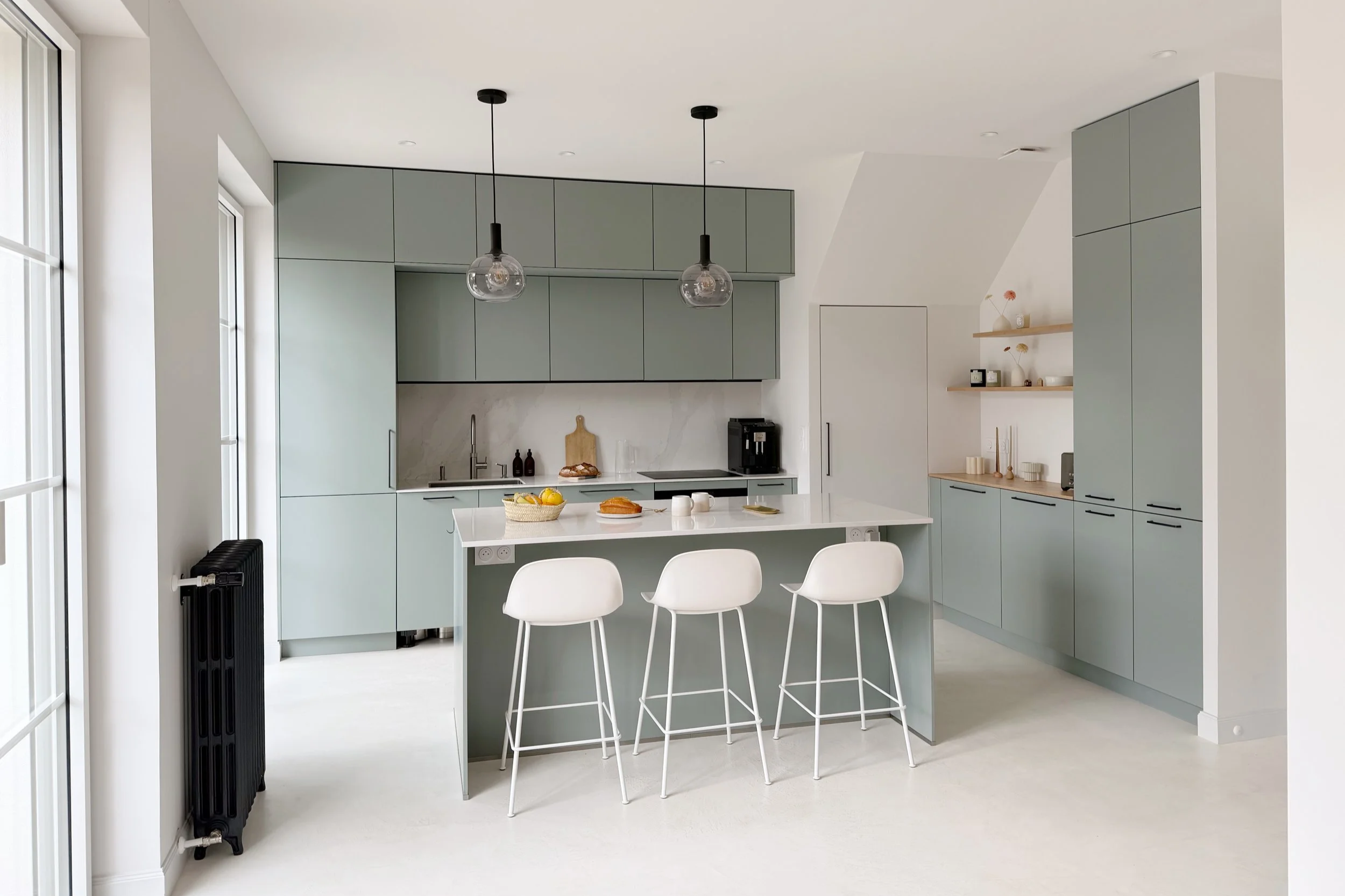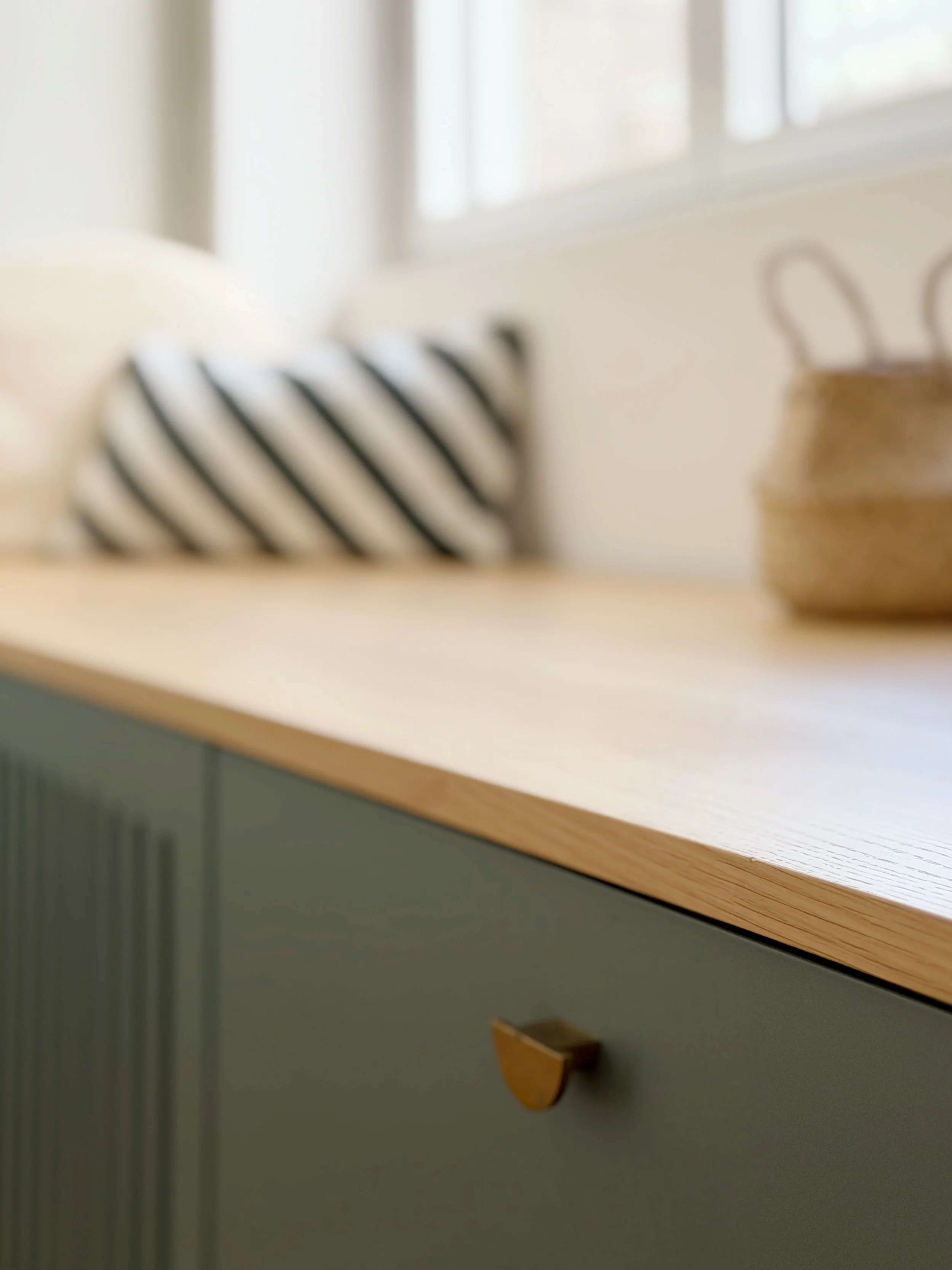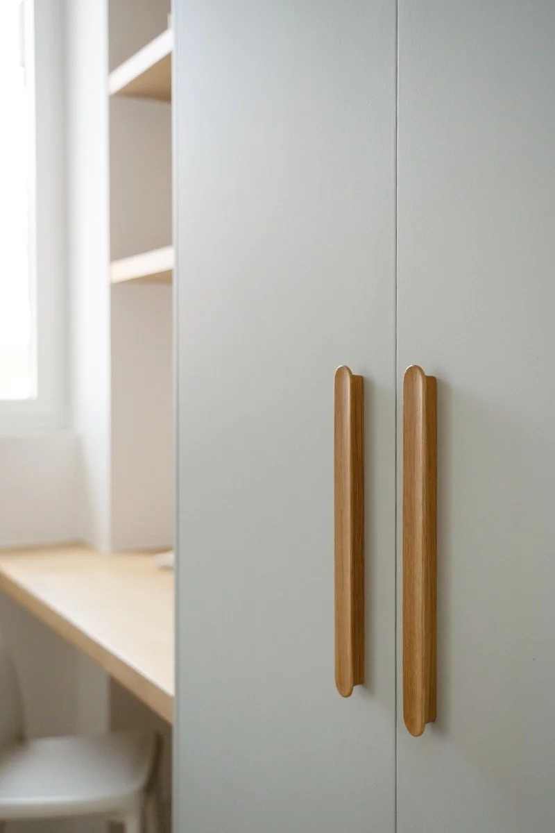 Agencement des différentes pièces, conception des pièces d’eau (une cuisine, 3 salles de bain et une buanderie) et conception d’agencements sur-mesure pour optimiser les espaces.